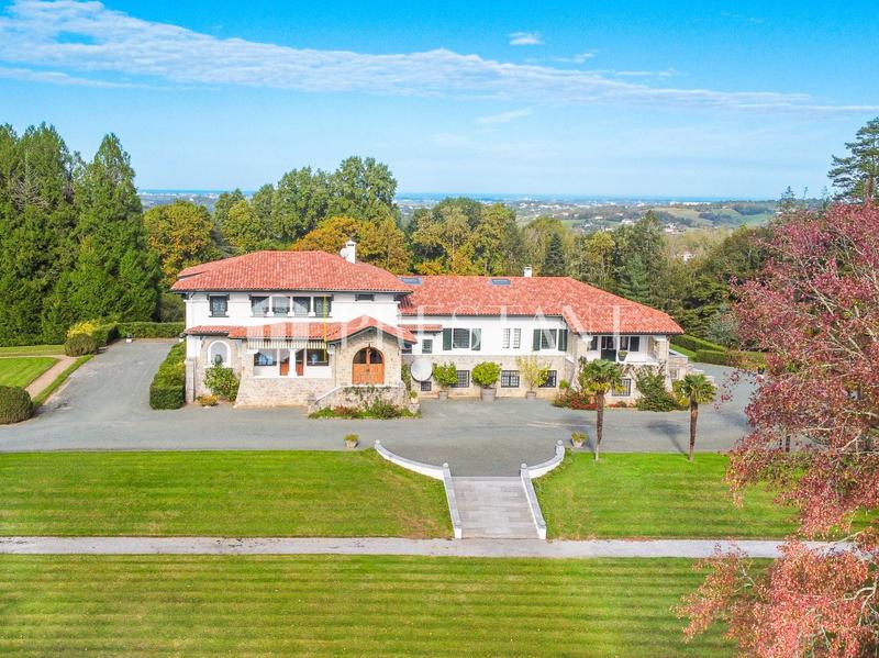 À seulement 20 minutes de Bayonne et 30 minutes de Biarritz, découvrez cette exceptionnelle propriété Art Déco des années 1920 signée par l'architecte renommé Henri Godbarge. Avec environ 550 m² de surface habitable, cette villa de prestige offre une vue panoramique sur les Pyrénées et bénéficie d'un ensoleillement optimal grâce à son orientation Est/Ouest. Elle se compose de deux salons lumineux, de deux salles à manger élégantes, d'un bureau raffiné, et de huit chambres spacieuses, dont deux suites parentales ouvrant sur de superbes terrasses. Les sept salles de bains offrent un confort absolu et une grande intimité, et chaque espace intérieur se distingue par de hauts plafonds, des vitraux d'époque, et des boiseries authentiques, véritables témoins du style Art Déco. La propriété comprend également une maison de gardien d'environ 140 m² avec quatre chambres, idéale pour accueillir des invités ou du personnel. Des garages spacieux, une serre, une piscine chauffée et un pool-house aménagé sont également à votre disposition pour des moments de détente en toute saison. L'ensemble est niché dans un parc arboré de plus de cinq hectares, assurant tranquillité et intimité absolue. En parfait état et soigneusement préservée, cette villa rare marie avec élégance le charme de l'architecture des années 1920 et le confort moderne. Cette propriété d'exception, située au coeur du Pays Basque, incarne l'élégance et le luxe. Contactez-nous dès maintenant pour organiser une visite privée et laissez-vous séduire par son cadre unique et son atmosphère incomparable. PRESTANT Realty - Alex Gaines - 07 78 10 04 86 - Plus d'informations sur www.prestant.com (réf. 640252816). Les informations sur les risques auxquels ce bien est exposé sont disponibles sur le site Géorisques : www.georisques.gouv.fr.