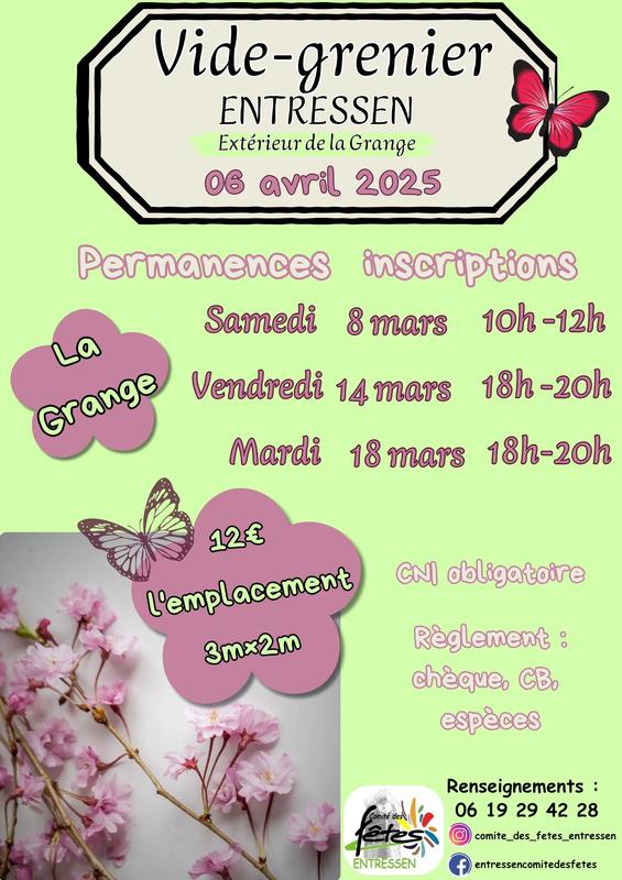 Vide grenier de printemps. Pas de vente de produits alimentaires, d’armes et de produits neufs