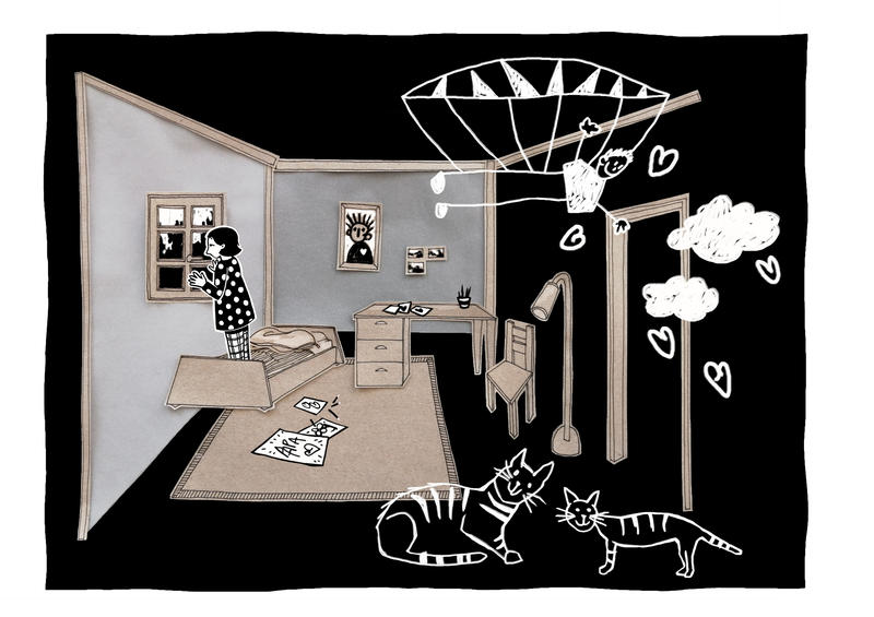 Dans son atelier, alors qu’elle entend une émission sur l’Odyssée d’Homère, sa réalité bascule dans un monde burlesque.