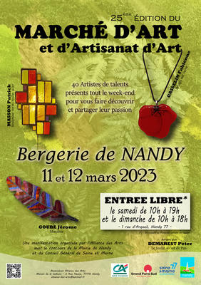 Le 28° Marché d'Art est heureux de vous accueillir à Nandy tout au long de ce week-end du 4 et 5 avril 2026.